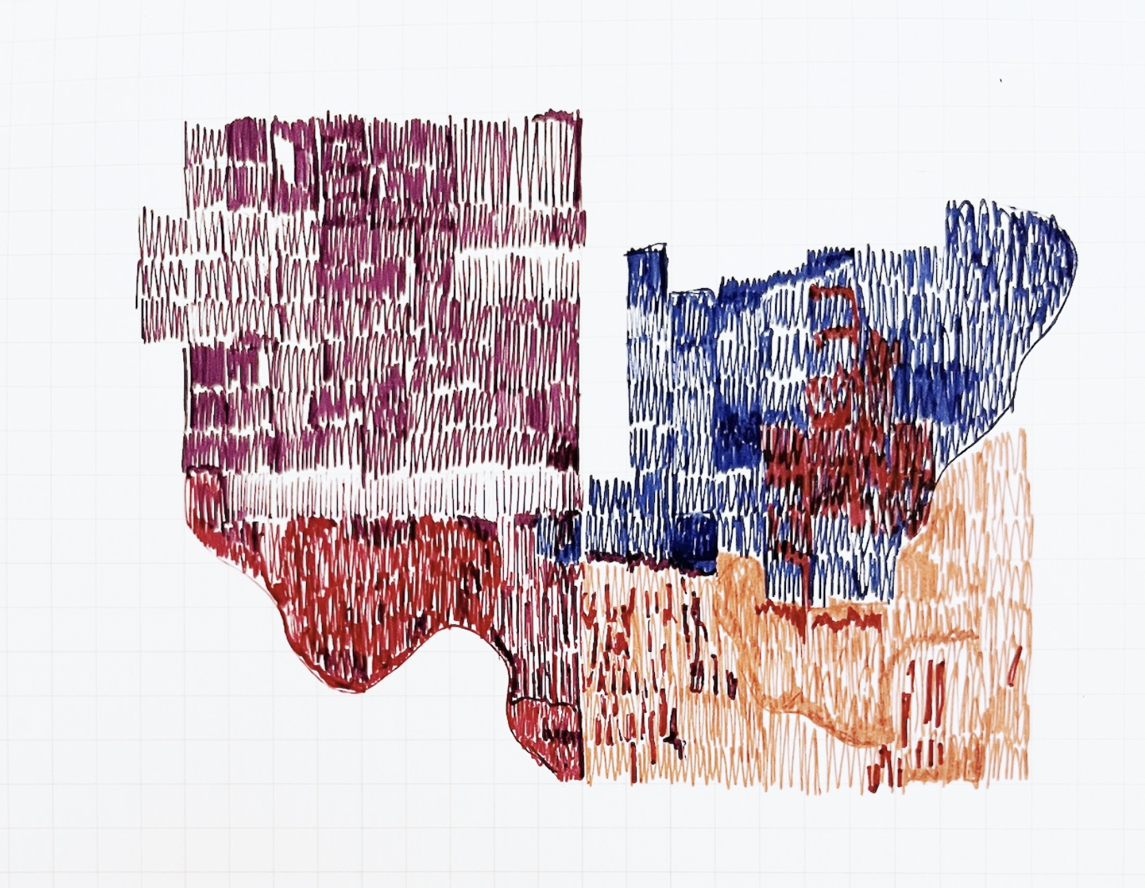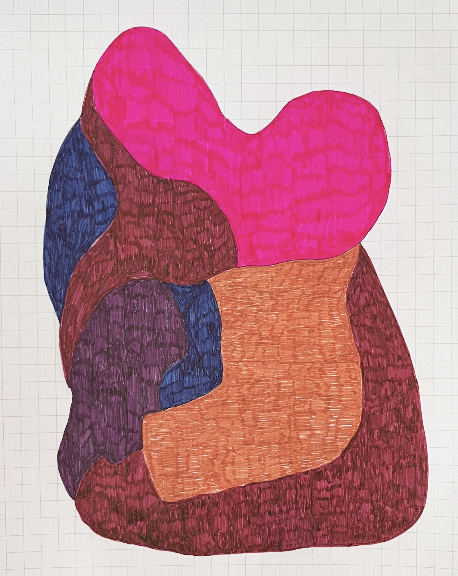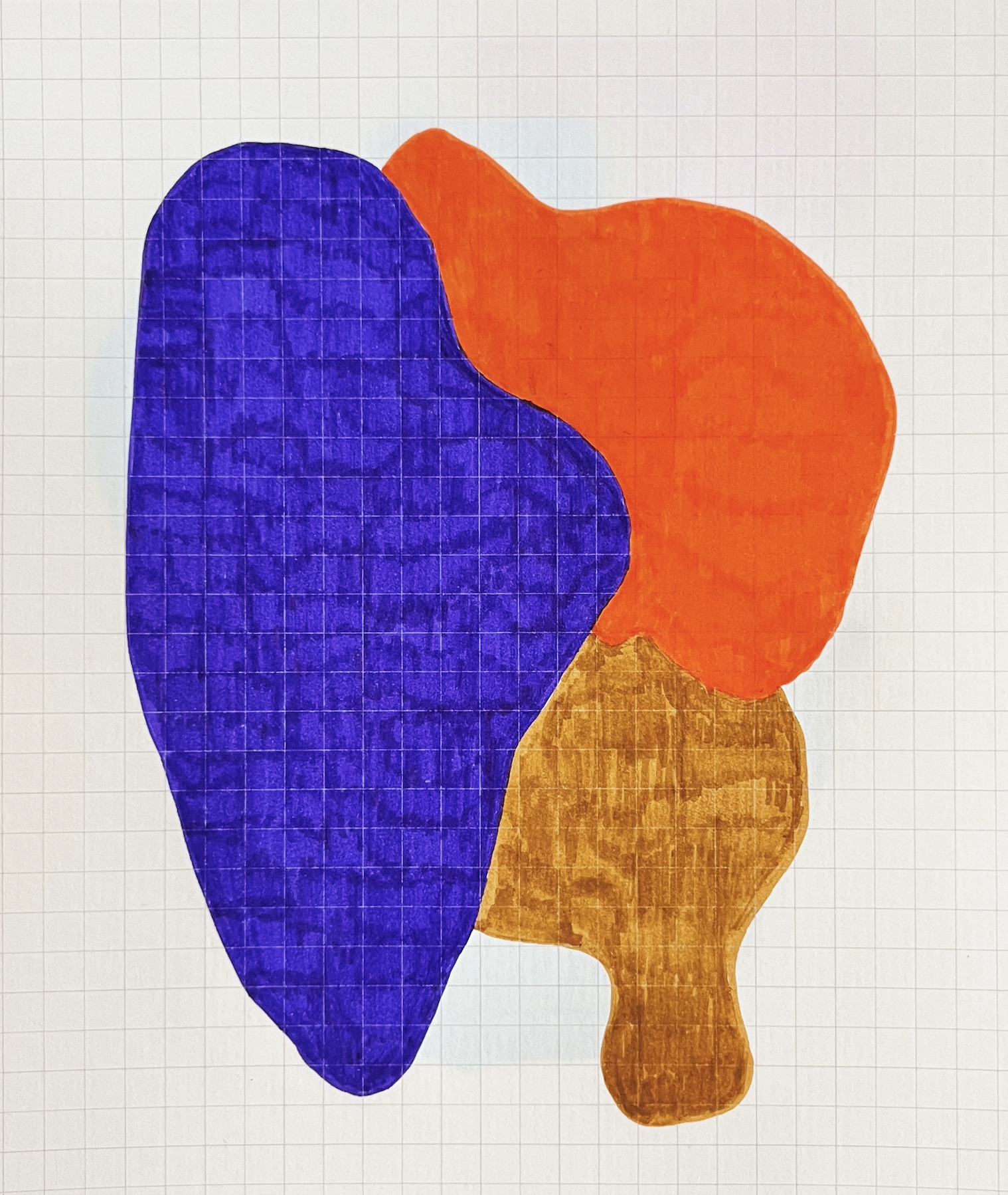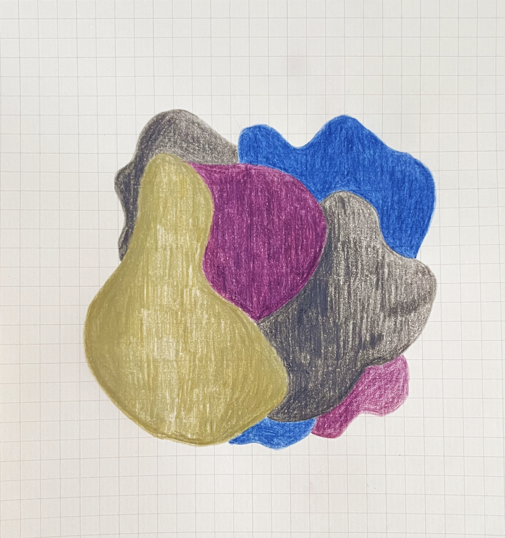 The shapes came from the colours as much as anything else. Each pen had its own weight, its own way of filling a form. The squares underneath gave everything a quiet structure — visible but not insistent.
