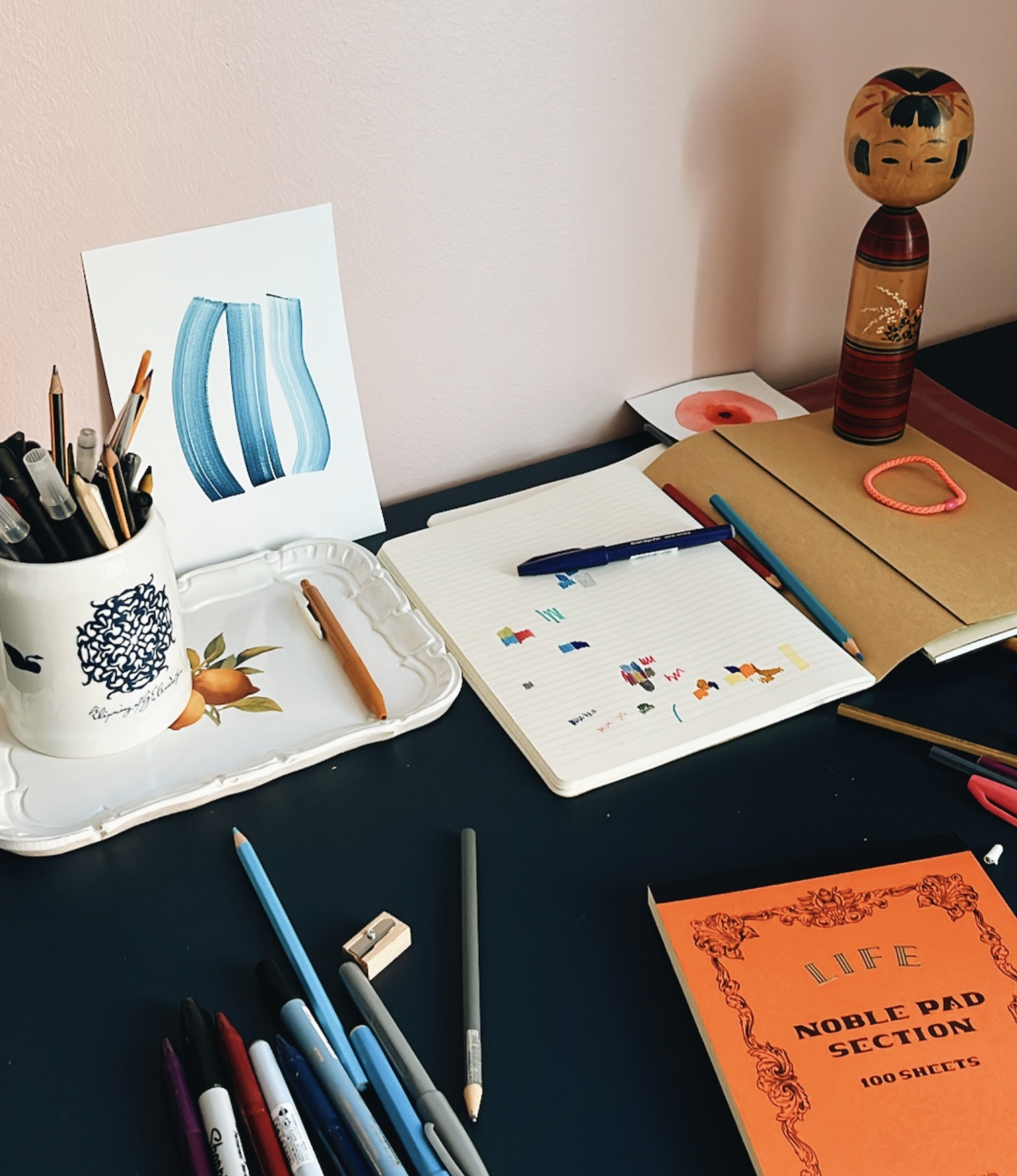 I love a good stationery shop. In Milan I had bought a set of ink pens — the colours were reason enough. And a small notepad with squares. Back in the studio, they were sitting on the desk together and it felt obvious.